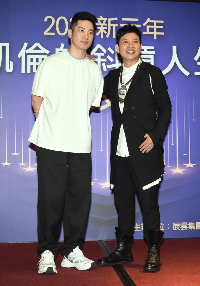 陳凱倫 (右)2020年7月召開斜槓人生記者會,兒子陳銳特地到場替老爸加油打氣。 (資料照,記者宋志雄攝)