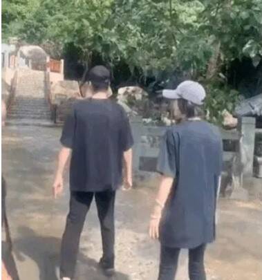 秦嵐(左)與魏大勛被拍到在三亞甜蜜遊。(翻攝自微博)