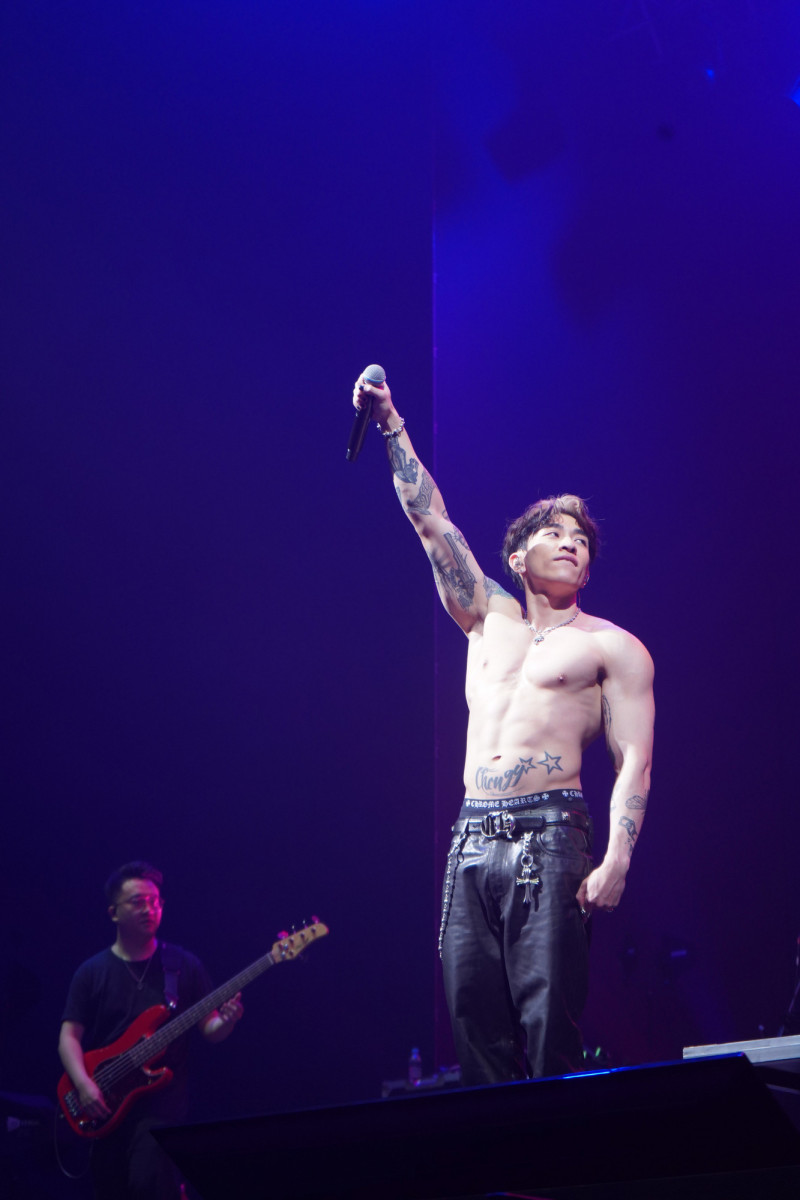 接著上場的是已經好幾年沒來香港的周湯豪,原本一身黑色勁裝,看到滿場興奮的歌迷,也帥氣地脱去黑色皮衣,他連唱《I GO》、《All Good》,並以中英文廣東話介紹自己,嘴甜逗樂粉絲:「有沒有想念我?」還不忘提醒觀眾可以追蹤他的社群媒體跟他「做朋友」。