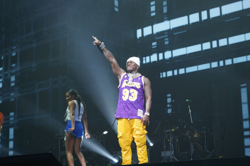 美國饒舌歌手DaBaby現身時,帶著多位金髮短褲性感女郎,演唱到一半,他突然問台下有沒有人過生日,大批「壽星」主動上台玩遊戲,DaBaby笑說要和他們玩韓劇《魷魚遊戲》中的「123木頭人」遊戲,最後由一名女歌迷勝出,DaBaby掏出一疊現金當作獎金,最後扯爛自己的白色背心拋給觀眾。