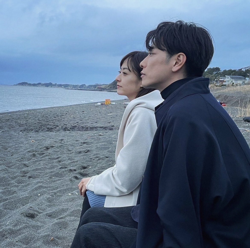 佐藤健(前)與井上真央在海邊看海的戲,讓許多網友淚崩。(翻攝自推特)