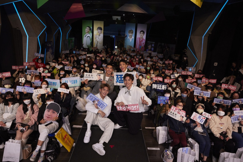 張瀚元、林輝瑝、陳廷軒、涂善存開心與粉絲合影。(益極娛樂提供)