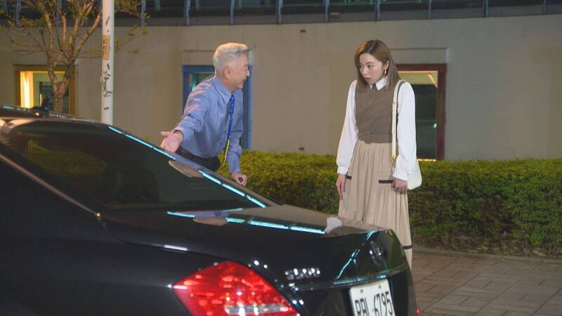 李國超(左)在《市井豪門》替兒子載女友王瞳(右)去約會。(民視提供)
