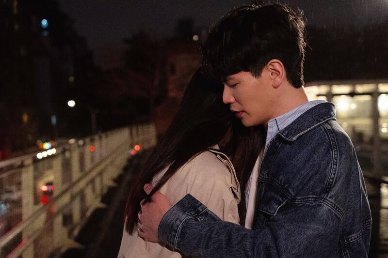 MV與女主角語晴在天橋擁抱的戲碼,蔡岳宸表示,「自己當下雖然在哭,但其實整個人都在發抖!」(杰思國際娛樂股份有限公司提供)