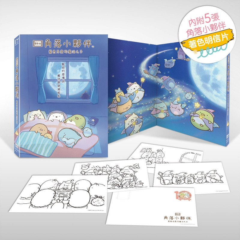 《角落小夥伴電影版:藍色月夜的魔法之子》實體DVD內附5張著色明信片。(得利影視提供)