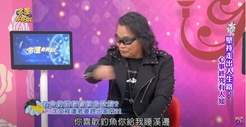 沈文程近日上節目《命運好好玩》,他透露過去有段時間沉迷釣魚樂趣,除了週末作秀外,其他時間都拿著釣竿度過,太太因此動怒,將他釣竿丟到門口並將門反鎖「你喜歡釣魚你給我睡溪邊,你不要回來了。」沈文程對於太太暴怒相當錯愕,一度在門口哭喊「我又不是去做壞事,只是愛釣魚而已」。