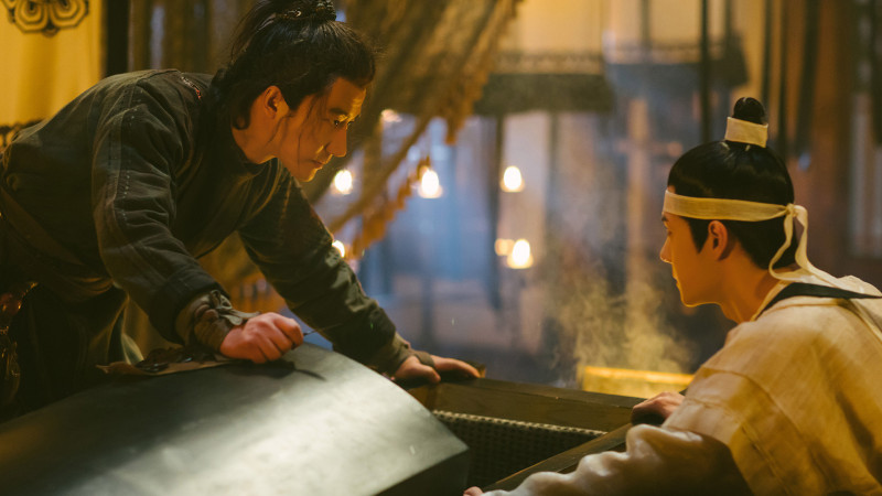 王一博(右)劇中和黃軒怒視,戲外卻連連NG。(龍華戲劇台提供)