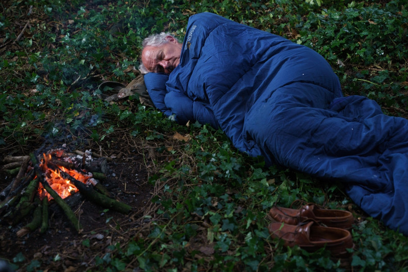 吉姆布洛班特在《一個人的朝聖》中,夜宿森林並尋找食物。(采昌提供)