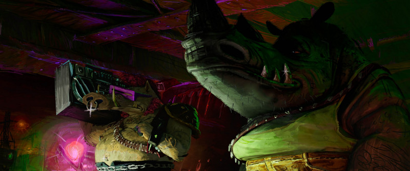 塞斯羅根同時也為《忍者龜:變種大亂鬥》變種疣豬「咆勃」(左)配音。(UIP提供)