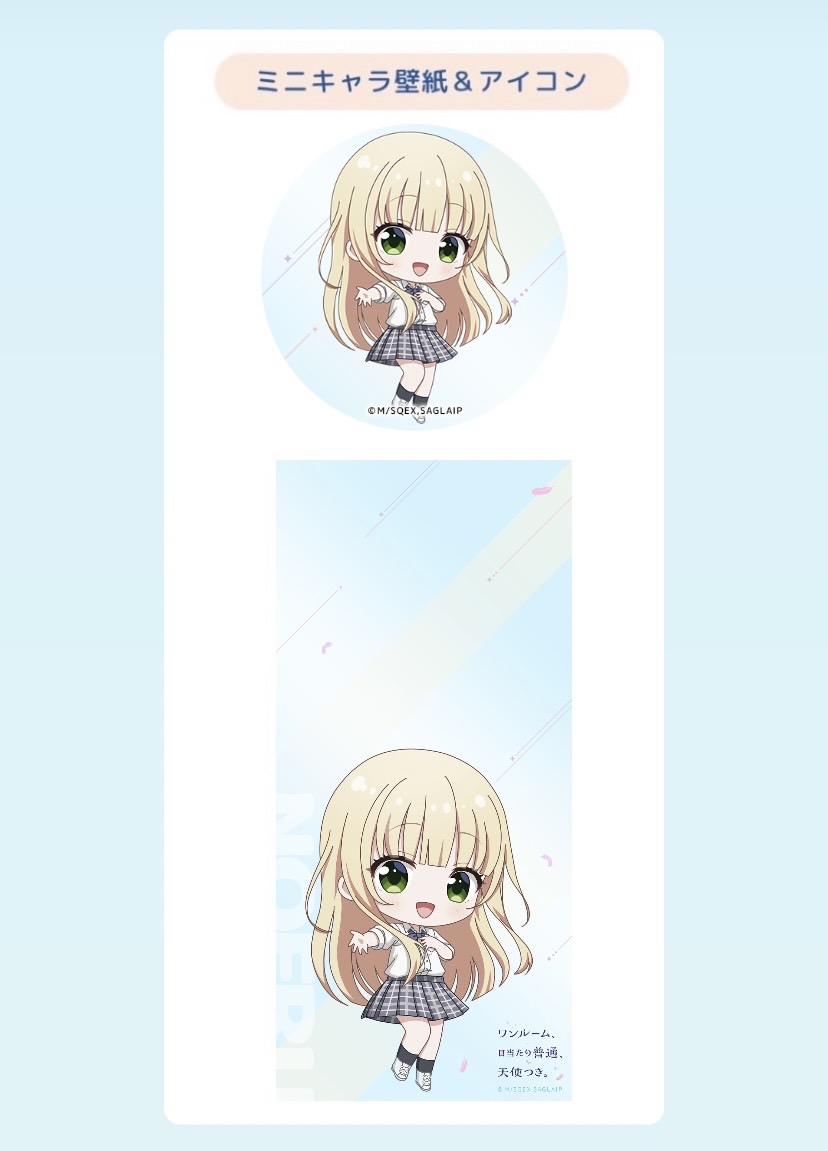 動畫《單人房、日照一般、附天使。》乃愛琉 迷你角色插圖桌布&頭像素材釋出中