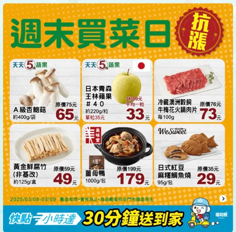 此外,全聯本週週末抗漲優惠,還有蔬果、麵包也有特價。