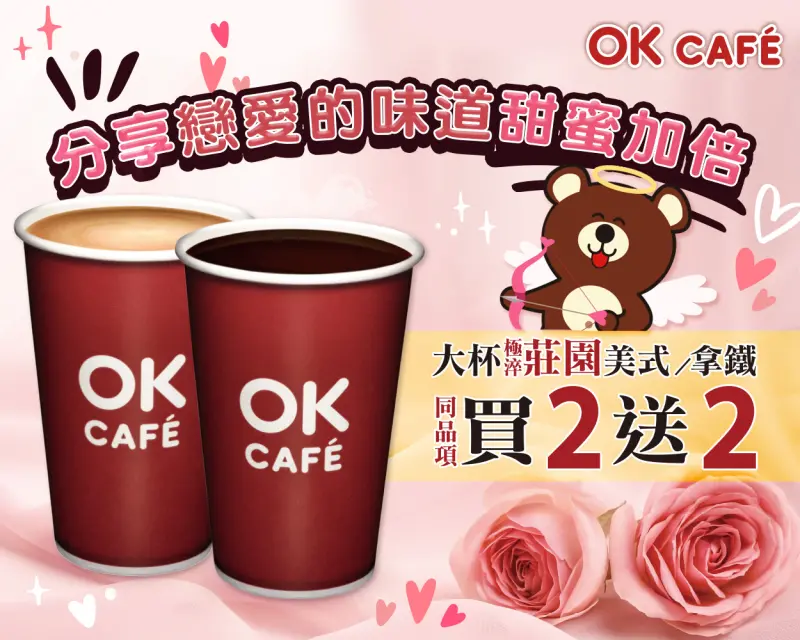 ▲OKCAFE白色情人節咖啡買二送二,包含美式、拿鐵咖啡。(圖/OK超商提供)