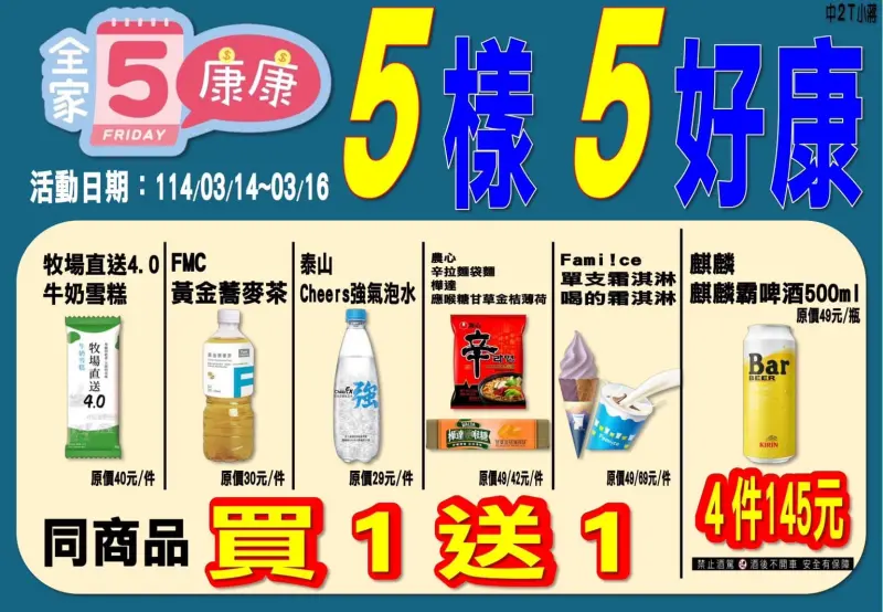 ◾全家喝的霜淇淋買1送1,5折(原價69元、特價35元)