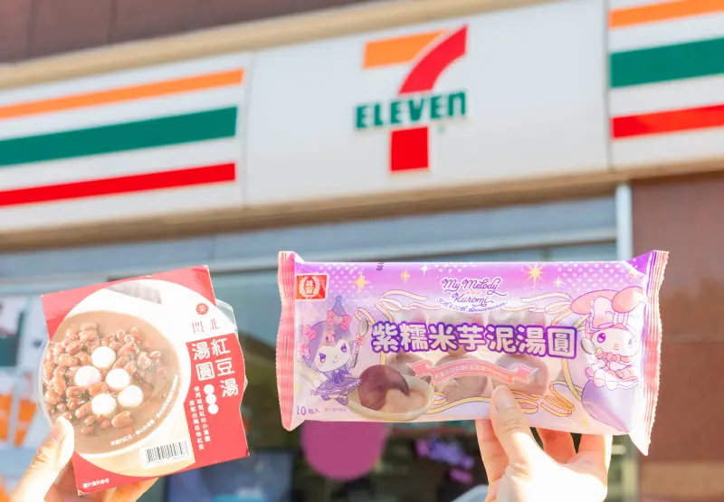 7-11今年引進美樂蒂×Kuromi週年限定包裝的「紫糯米芋泥湯圓(售價92元)」更獨家推出凡購買指定湯圓可以99元加購美樂蒂×Kuromi 餐具組的超萌活動!還有傳統與創意兼具的「粿」湯圓「濃醇芝麻草仔粿湯圓」以及「香濃花生紅龜粿湯圓」,兩款定價皆79元。