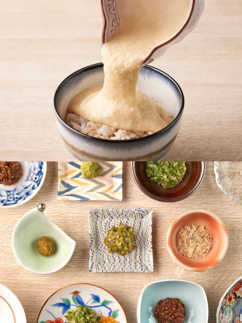 「牛舌佑介」定食除了提供牛尾湯、特製山藥泥及麥飯三大標配;並提出「新仙台風格」吃法!除了傳統的青辣椒南蠻漬與淺漬白菜,還提供清新酸香帶鹹的希臘檸檬鹽、溫潤不嗆鼻的芥末、清香辛辣的九州柚子胡椒、清甜溫潤的鹽蔥醬。