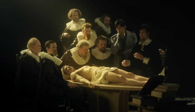 聽到阿Ken的提問,周董幽默嗆他:「裡面有蒙娜麗莎耶!你有病是不是?她還在羅浮宮,要用點腦!」逗得全場哈哈大笑。周董在《太陽之子》MV裡扮演神探,他還融入林布蘭創作名畫《杜爾博士的解剖學課》畫作中,也引起網友好奇研究MV中還出現哪些畫作,其實包括《馬拉之死》,還有泰勒絲MV中也曾致敬過的《奧菲莉亞》等名畫,都在周董的MV中。