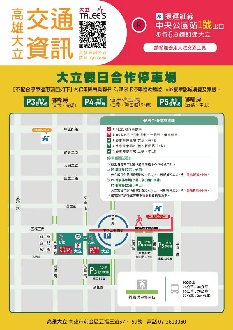 ▲高雄大立百貨交通、周邊停車場資訊。(圖/高雄大立百貨官網)