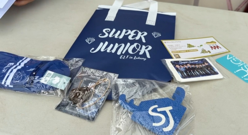 今天的餐會不只是秒殺,不少E.L.F.(Super Junior官方為歌迷的命名,意思為永遠的朋友)的穿搭更以Super Junior寶藍色為基調,主辦人愛伊特更準備了伴手禮,寶藍色的保冷袋,E.L.F.同名的社頭襪子,還有最有鹿港味的SJ字樣的香牌等等,都讓E.L.F.愛不釋手。