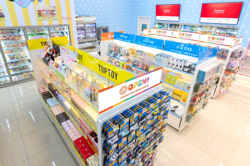 在娛樂互動與機台體驗方面,則有娃寶機遊玩設備,強調盒玩與收藏開箱驚喜的「IP專區」,販售野獸國、TOP TOY兩大品牌限定盒玩商品,青塘門市更全新進駐生活質感品牌「Norns」,逾千項商品完整貨架陳列。