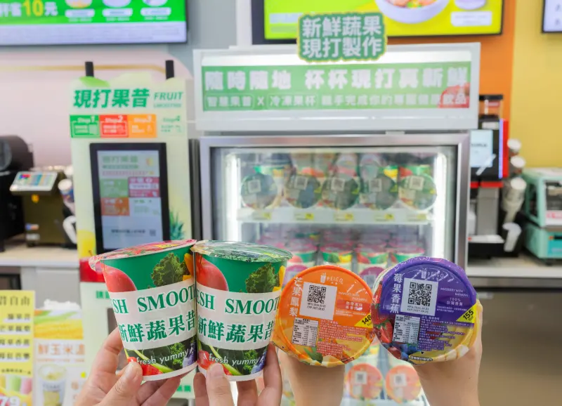 ▲「智能果昔機」現打果昔使用100%新鮮水果製作鮮果果泥與冷凍果丁。(圖/7-11提供)