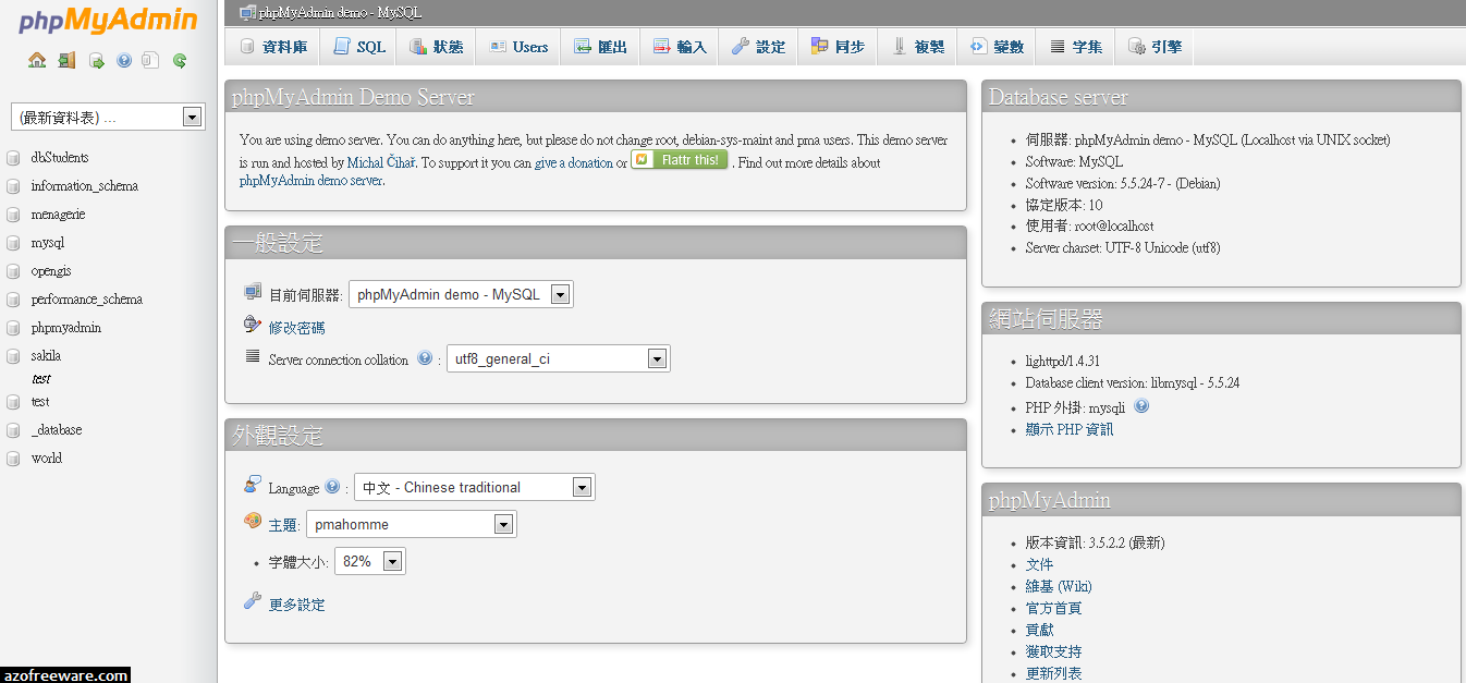 phpMyAdmin is a free software tool written in PHP, intended to handle the administration of MySQL over the World Wide Web. phpMyAdmin supports a wide range of operations with MySQL. The most frequently used operations are supported by the user interface (managing databases, tables, fields, relations, indexes, users, permissions, etc), while you still have the ability to directly execute any SQL statement.