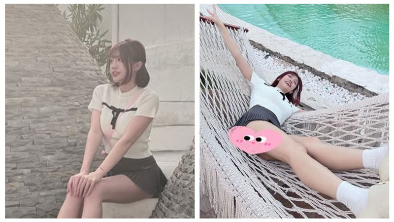 「樂天女孩」熊霓擁有亮麗的外型,但近年熊霓逐漸消失在綜藝節目,她到越南旅遊,拍攝一系列美照,近日有一張在吊床的照片,疑似走光,讓熊霓後製p圖,用小愛心急遮。