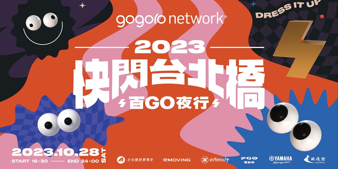最狂的電車盛事「快閃台北橋」嶄新回歸!首度結合萬聖節狂歡氛圍,獻上電車改裝大賽、超人氣歌手與金曲樂團演出、風格美食市集、夜騎台北橋等一系列活動,打造前所未有的「百 GO 夜行」變裝派對!騎上 Gogoro 或 Powered by Gogoro Network (PBGN) 電動機車,10/28 一起出發搗蛋 👻