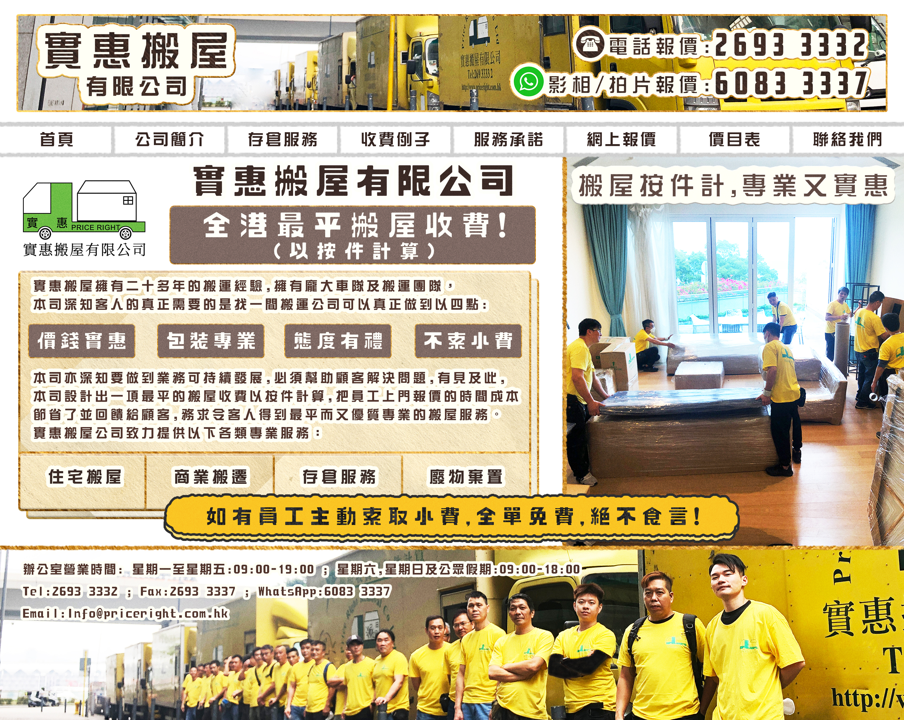 實惠搬屋是香港一間專業搬運搬屋公司。公司憑累積多年的搬運搬屋和存倉經驗,特設計出一項最平的搬運搬屋計算方法,務求令每一位顧客得到最平而又最優質轉的的搬屋服務。選擇我們,選擇實惠!