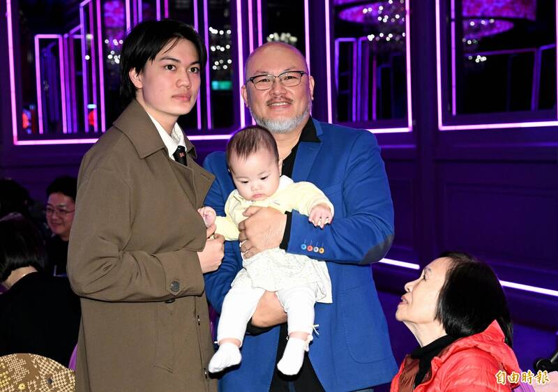 劉亮佐和媽媽兒女出席【第六屆筋斗云劇本創投平台】記者會(記者宋志雄攝)〔記者蕭方綺/台北報導〕劉亮佐今和兒子劉子銓、6個月大的女兒「典典寶寶」一起出席「第六屆筋斗雲劇本發佈會」,這是典典寶寶第一次公開露面,她靠著一雙電眼,擄獲現場所有人,連媒體訪問時都無法專心,一旁劉子銓看了很擔心,直呼妹妹眼睛太會
