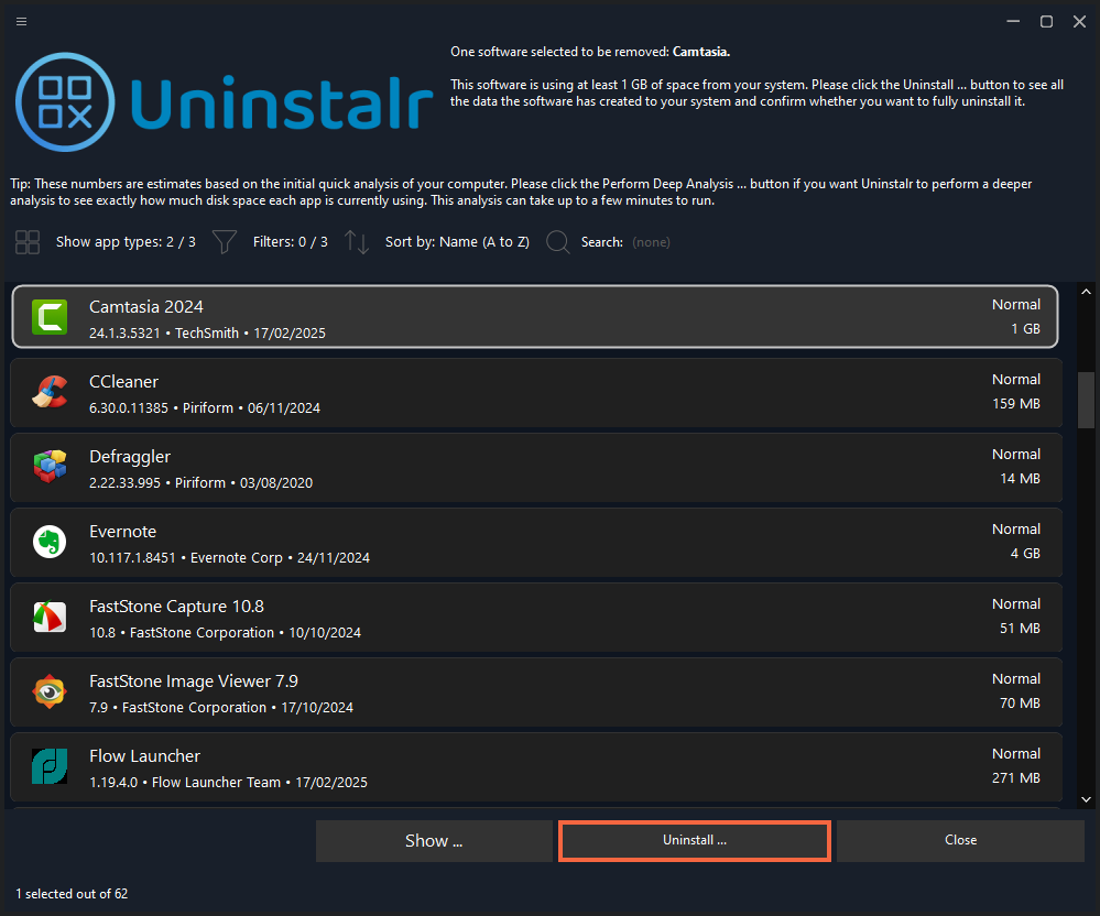 Uninstall software in Windows with Uninstalr.