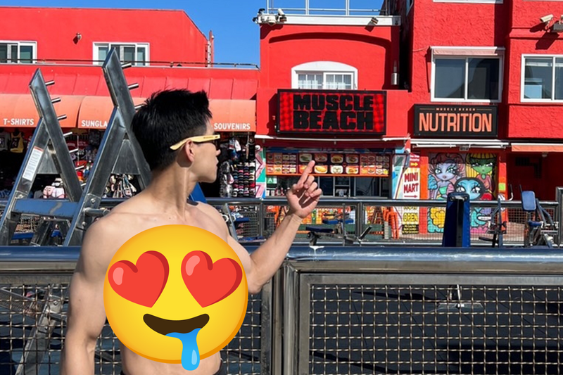 李齊在洛杉磯Venice beach的戶外健身房踢館成功。(李齊提供)〔記者胡如虹/台北報導〕有「小提琴界的彭于晏」之稱的李齊,明明是小提琴男神,卻練出一身筋肉人的好身材, 以前赴美國洛杉磯知名的威尼斯肌肉海灘戶外健身房都不敢脫上衣,最近終於以完美的6塊腹肌和人魚線踢館成功。李齊表示,因為學音樂練琴
