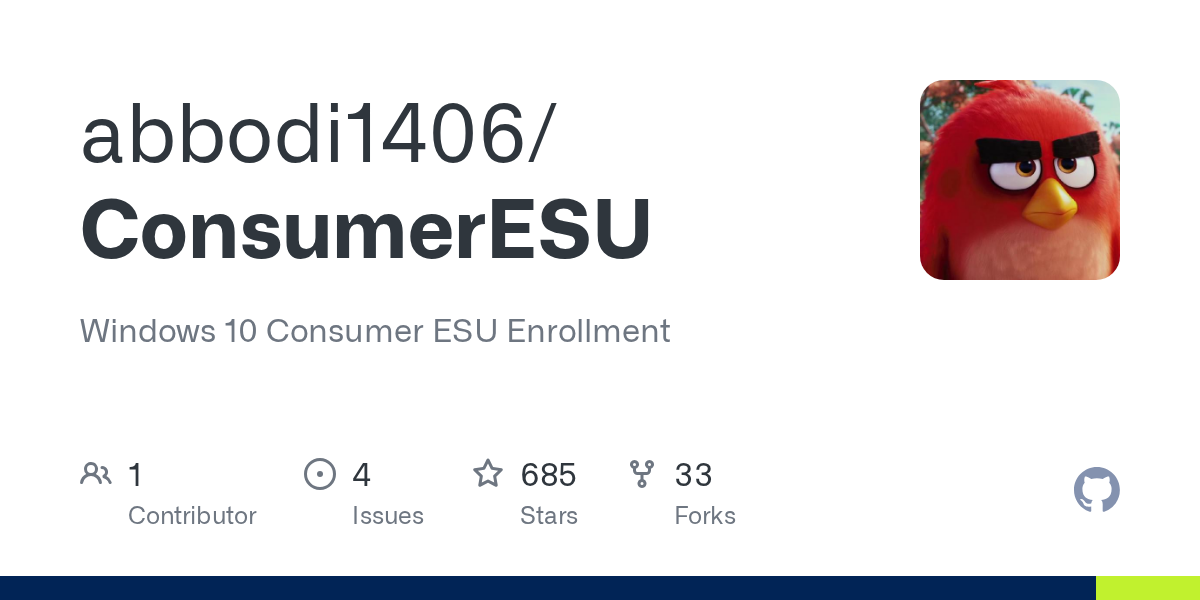 Windows 10 Consumer ESU Enrollment. Contribute to abbodi1406/ConsumerESU development by creating an account on GitHub.