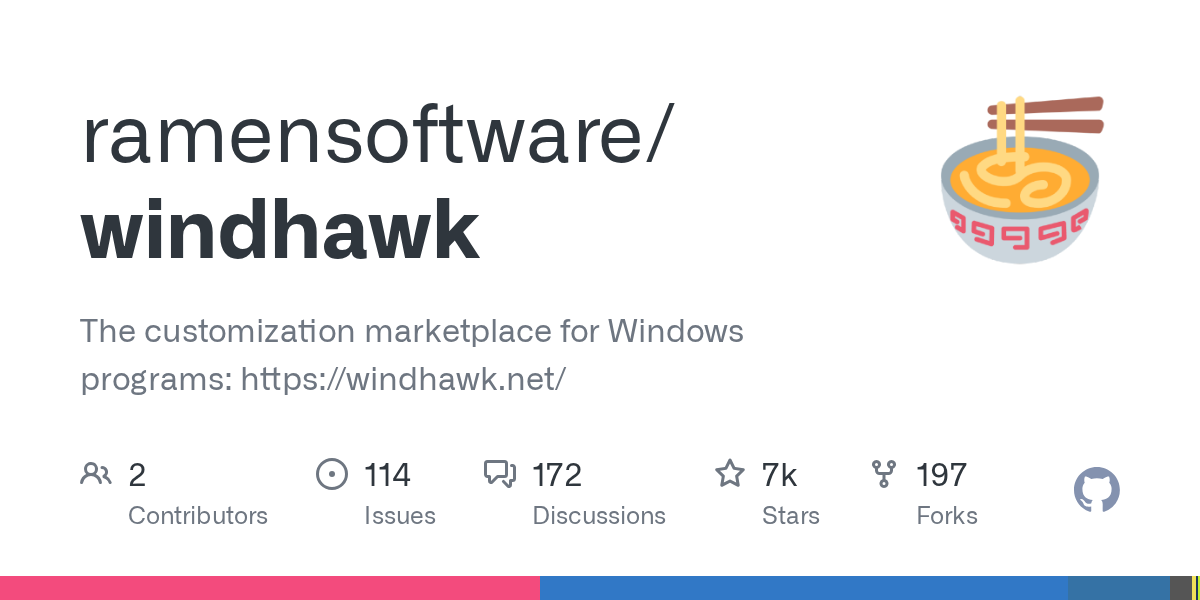 The customization marketplace for Windows programs: https://windhawk.net/ - Releases · ramensoftware/windhawk